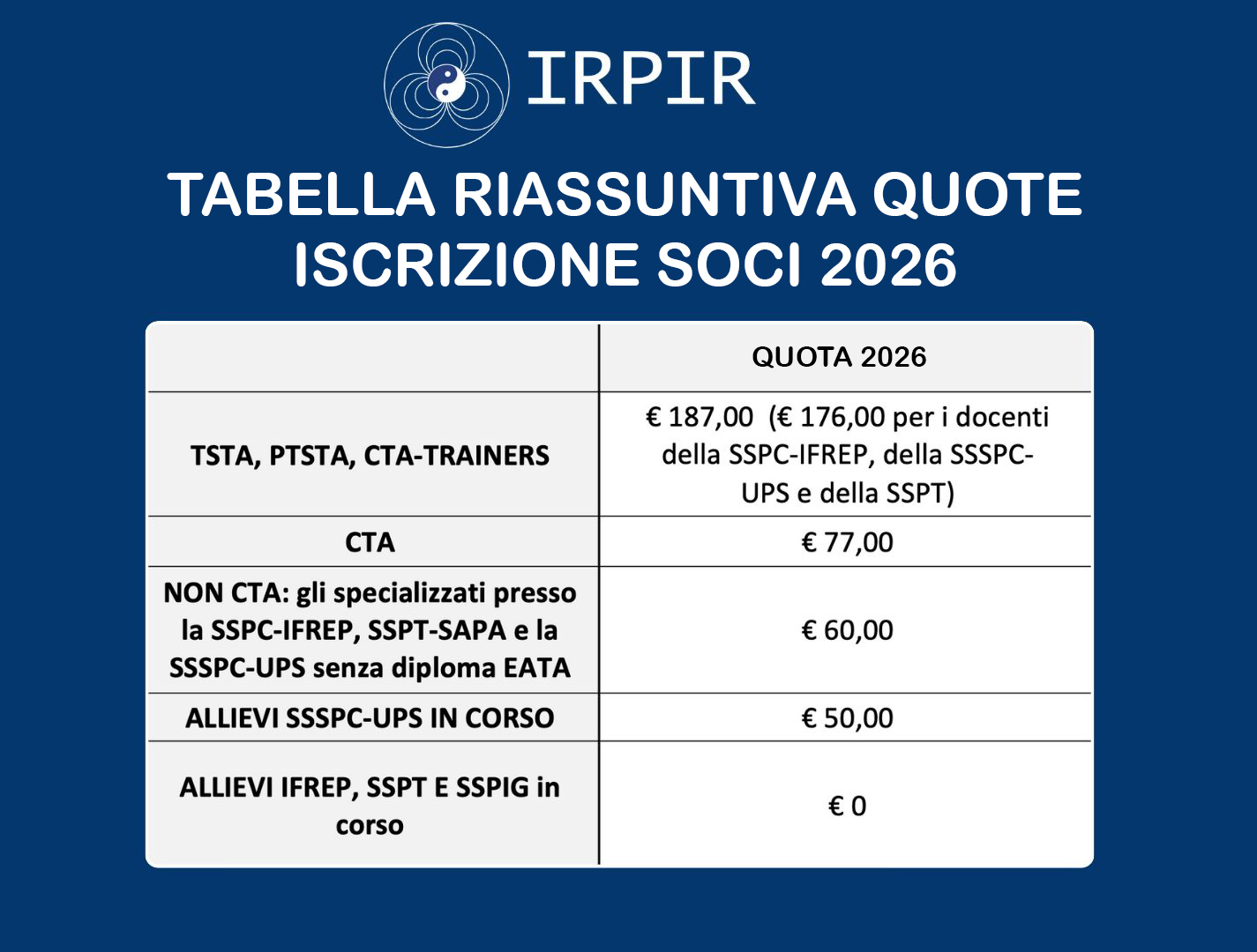 1. Rinnovo iscrizione alle Associazioni IRPIR-EATA per il 2026